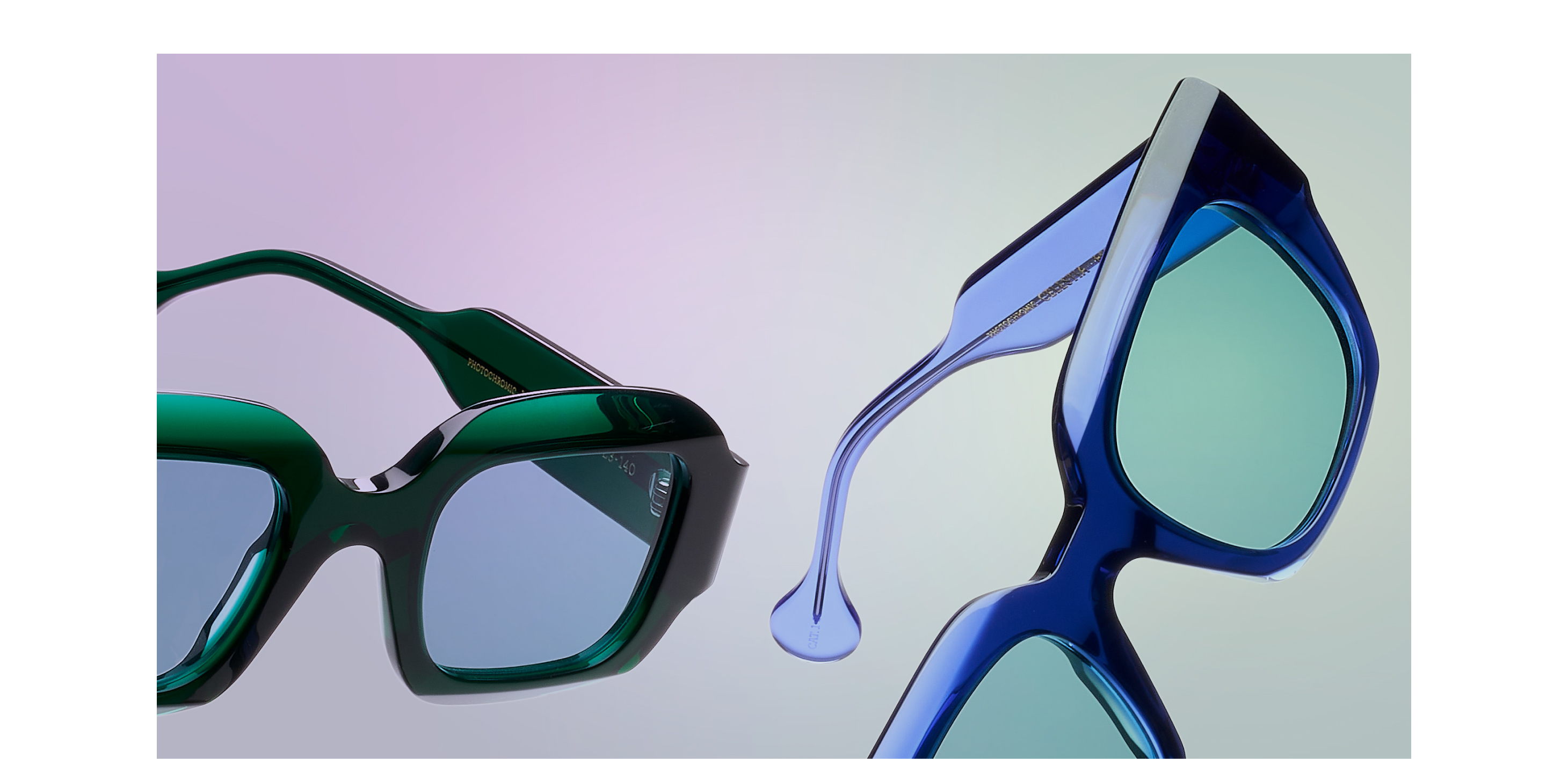 I modelli da vista che fanno parte della collezione Sculptures sono caratterizzati da una palette cromatica che accresce il loro principale valore: la tridimensionalità. In particolare, i nuovi materiali esclusivi sono caratterizzati da una sfumatura a due colori che attraversa il frontale e che cambia di intensità al variare dello spessore della plastica.