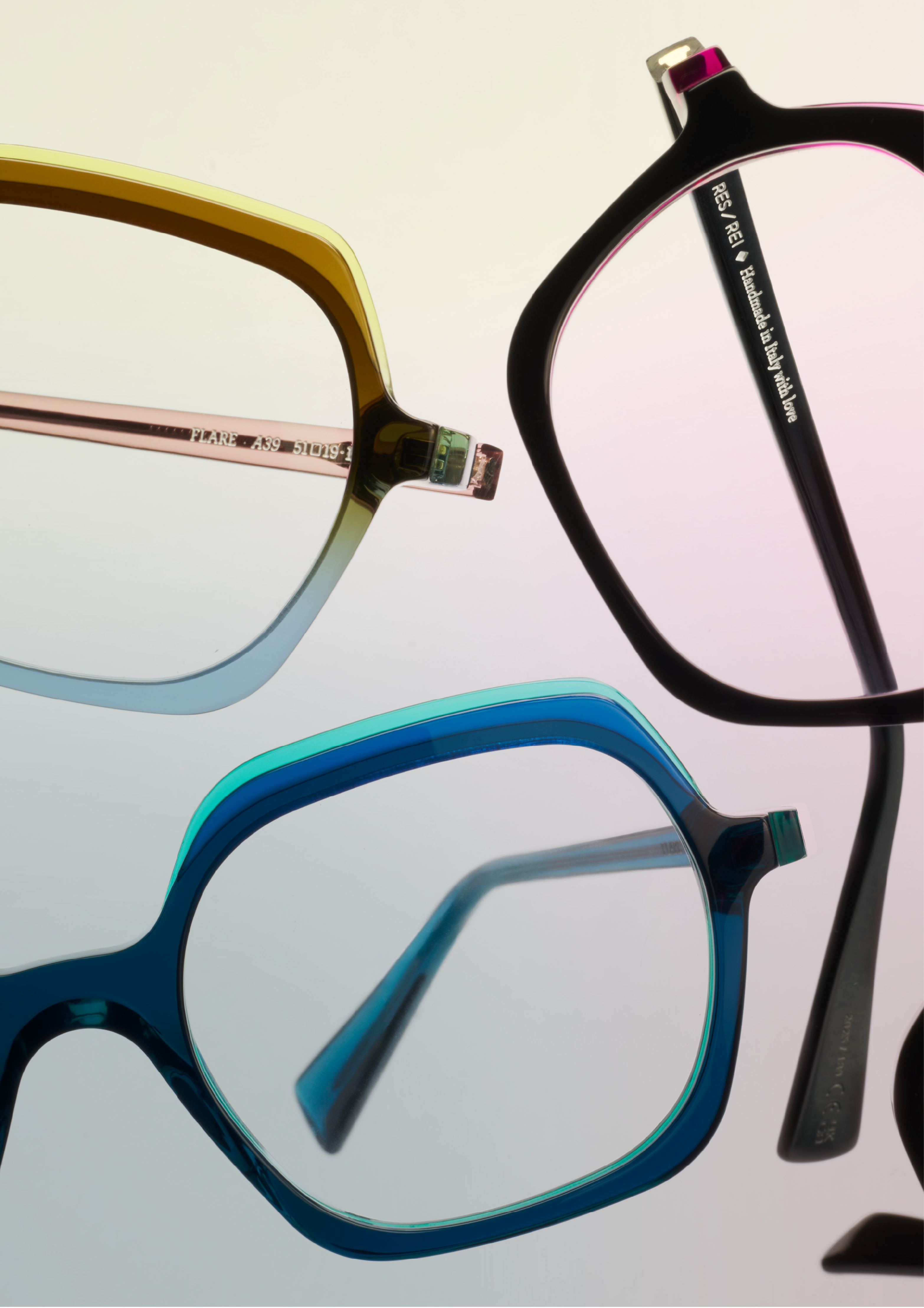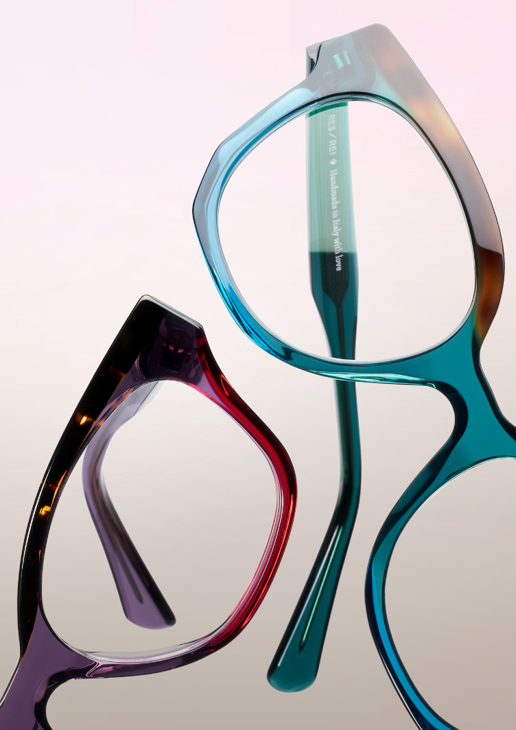 RES / REI collections are divided into product families, each shaped by a distinct inspiration, ranging from design to art and fashion. These themes evolve into refined silhouettes and original color stories. Handmade in Italy with high-quality materials, every frame reflects our independent spirit, combining craftsmanship, creativity, and attention to detail in pieces made to last.