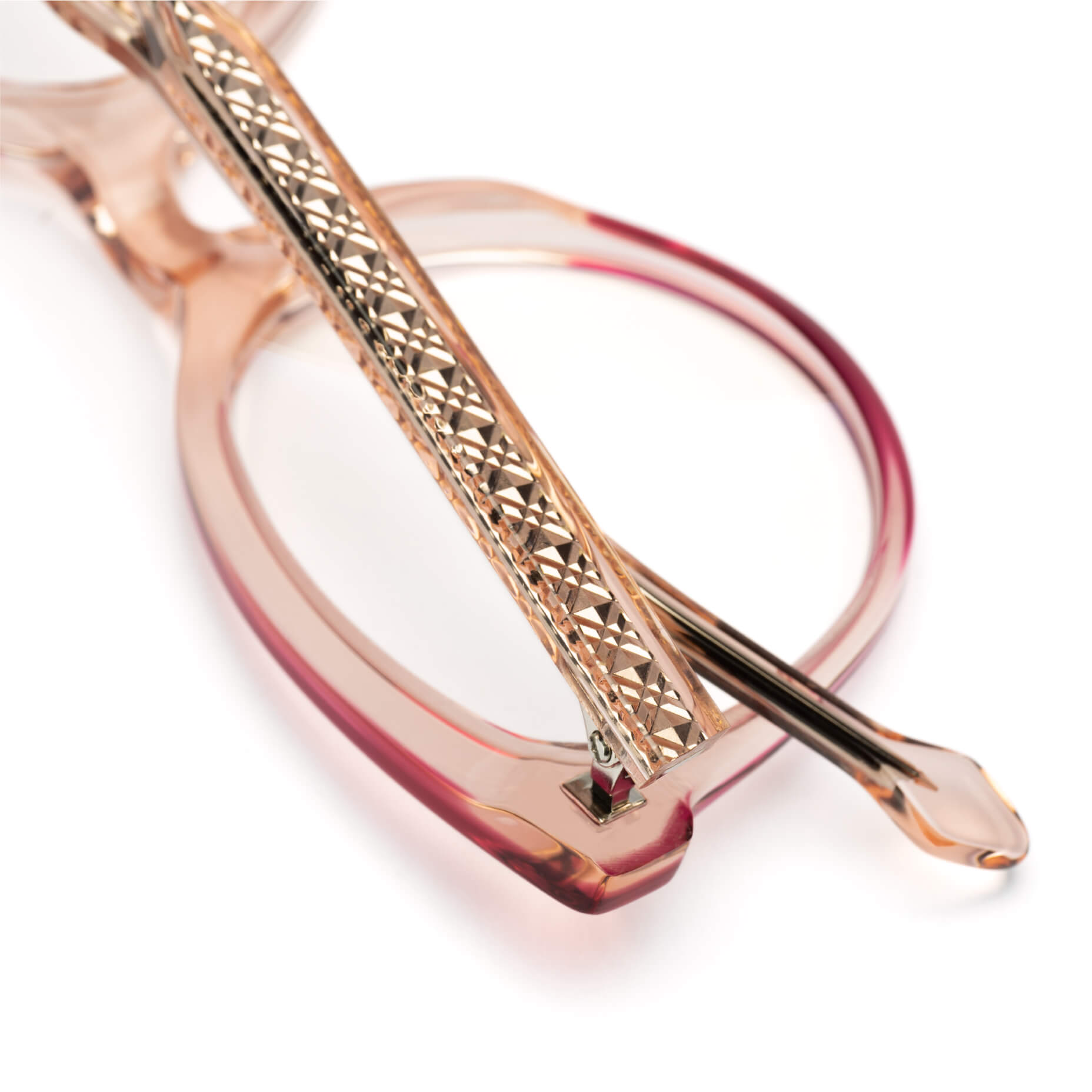 The temples of the models in the Essences collection are characterized by a unique end part: its shape is inspired by the RES / REI logo.